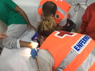 Efectivos del Equipo de Respuesta Inmediata en Emergencias (ERIE) de Ayuda Humanitaria de Cruz Roja atendieron a los 17 inmigrantes a su llegada al Puerto de Cartagena.