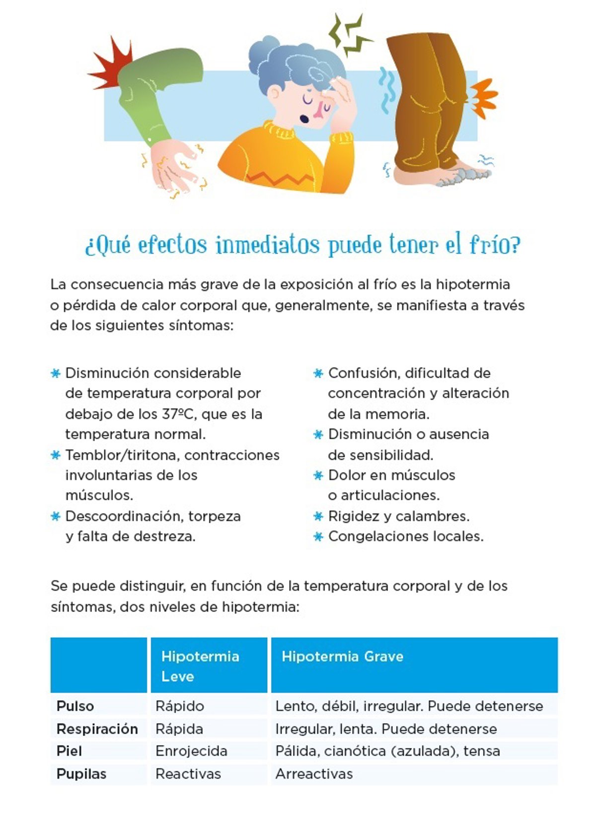 "Si tienes que hacer actividades en el exterior durante las horas de frío, protégete (vestimenta, alimentación, etc.) y muévete, pero sin realizar ejercicio físico excesivo", añade la organización humanitaria.