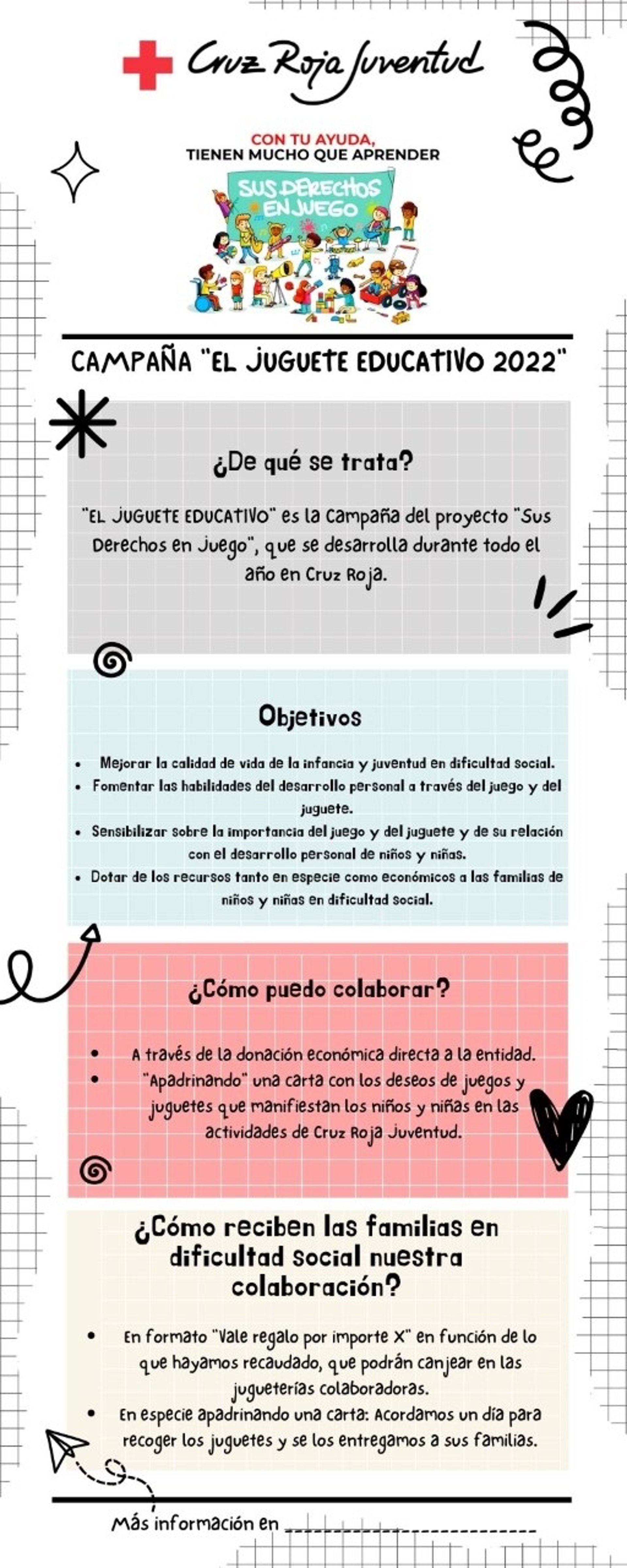 Todo ello con el objetivo de promover el uso de juegos y juguetes como herramienta educativa y de trasmisión de valores en el contexto escolar y familiar. La crisis derivada de la situación sanitaria por la COVID-19 ha empeorado la situación de muchas familias atendidas por Cruz Roja, y por ello, esta campaña cobra aún más importancia en este contexto en el que se busca garantizar que estos niños, niñas y jóvenes no tengan dificultades para el acceso al juego.