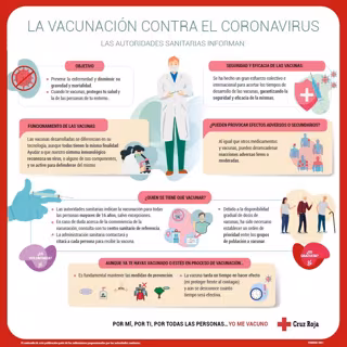 Respecto a la vacunación frente al coronavirus (infografías y vídeos) está disponible el enlace 'https://www2.cruzroja.es/que-hacemos/salud/covid-19/vacunaci...'.