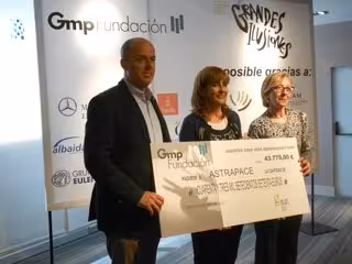 La concejal de Bienestar Social y Sanidad, María del Carmen Pelegrín, ha presidido esta mañana el acto de entrega del cheque con el dinero recaudado en la cuarta edición del Festival Internacional de Magia Grandes Ilusiones. La aportación, 43.770 euros, irá destinada al desarrollo del Proyecto Hidroterapia y natación adaptada de la Asociación Astrapace.