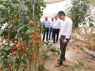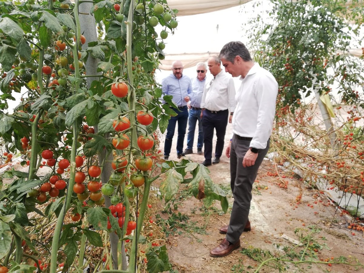 El consejero de Agua, Agricultura, Ganadería y Pesca, Miguel Ángel del Amor, ha visitado este lunes una plantación experimental de tomates rosa de la empresa 'Ecotomate', en Mazarrón. Allí destacó que "esta compañía tiene alrededor de 2.000 plantas experimentales en invernadero para comprobar su adaptación durante el invierno en la Región".
