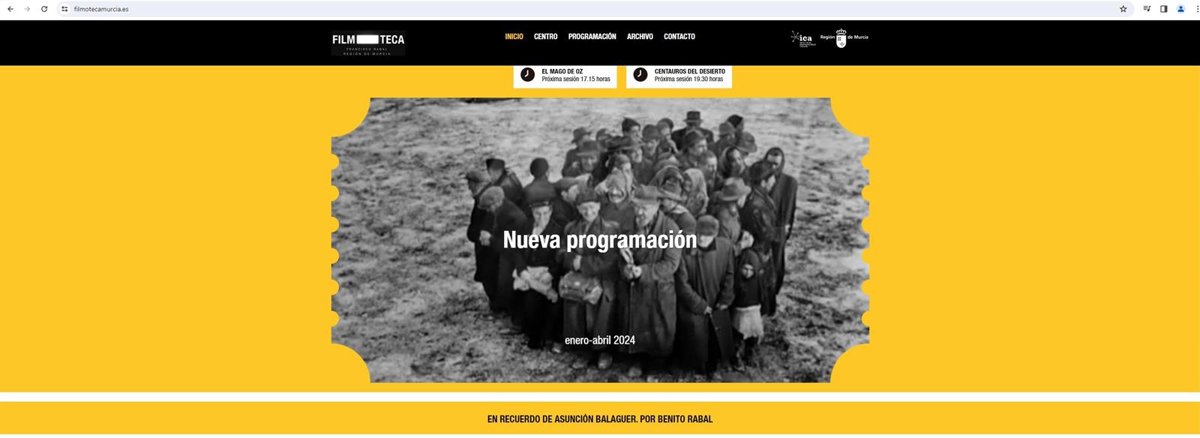 Imagen del apartado de la nueva programación de la página web de la Filmoteca regional - CARM
