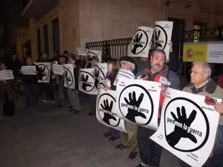 De este modo, los manifestantes, entre los que se encontraba el candidato de IU-Verdes a la Presidencia de la Región de Murcia, José Antonio Pujante, han portado carteles de 'No a la Guerra' y 'Paremos la Guerra' y han coreado cánticos como 'Aznar y ZP la misma mierda es', 'No más sangre por petróleo' y 'Ayer en Irak, hoy en Libia'.