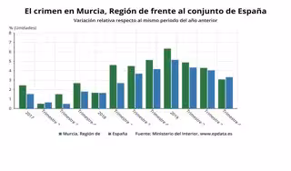 El crimen en la Región de Murcia frente al conjunto de España - EP DATA