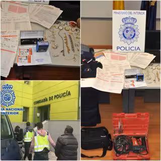 En los registros efectuados en sus domicilios se pudo intervenir los terminales de telefonía móvil que usaban para sus comunicaciones, ropa de trabajo con el anagrama de la empresa suministradora, también material informático, credenciales falsificadas de empresas, facturas y albaranes dispuestos para ser usados y tampones de empresas ficticias.
