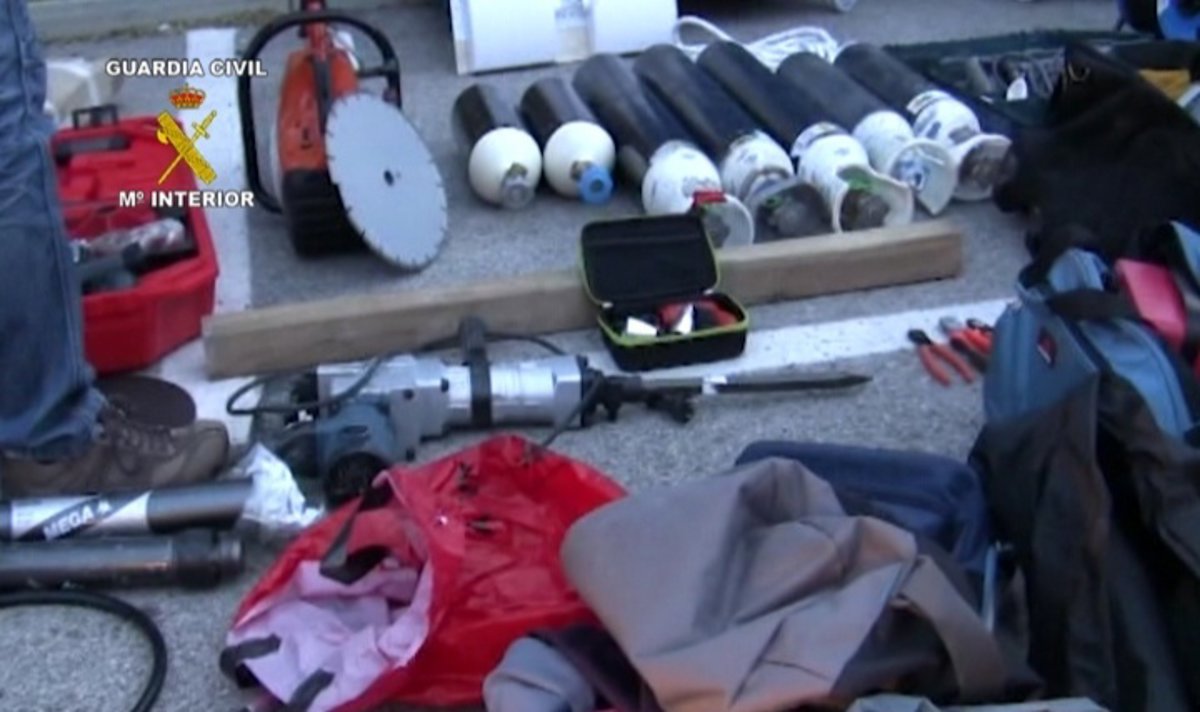 En la furgoneta, los agentes encontraron gran cantidad de útiles empleados en los asaltos (lanza térmica, radiales, inhibidores de frecuencia, transmisores, guantes, linternas, etc.). Además, hallaron siete botellas de gas acetileno, que habría supuesto un grave peligro para la integridad de las personas en caso de que se hubiera producido alguna explosión fortuita del gas.