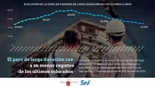 La Región ha llegado al cierre del pasado mes de noviembre a su menor cifra de parados de larga duración de los últimos ocho años. Concretamente, en la actualidad son un total de 42.519 desempleados los inscritos en el SEF durante doce meses consecutivos o más, un dato que no era tan bajo desde los 40.943 que se contabilizaban a la conclusión de abril de 2010.