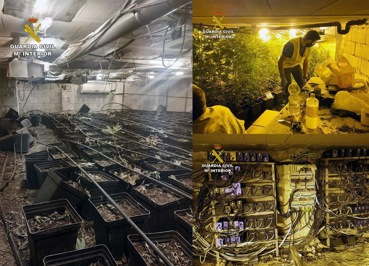 Recientemente, la Guardia Civil ha llevado a cabo el registro del inmueble donde se ocultaba un invernadero clandestino subterráneo, dotado de todos los medios técnicos y logísticos para facilitar el cultivo interior del cannabis, que albergaba un total de 920 plantas.