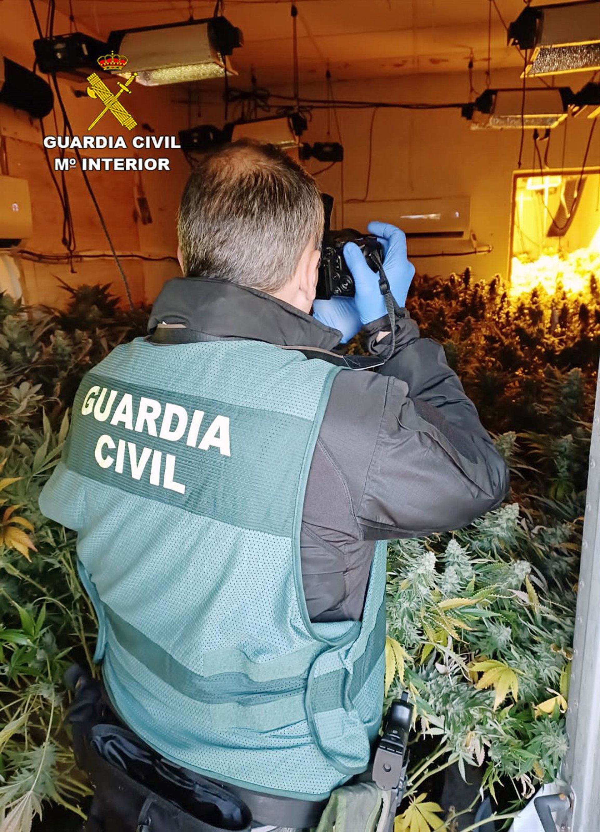 Un agente fotografía parte de las plantas de marihuana incautadas - GUARDIA CIVIL