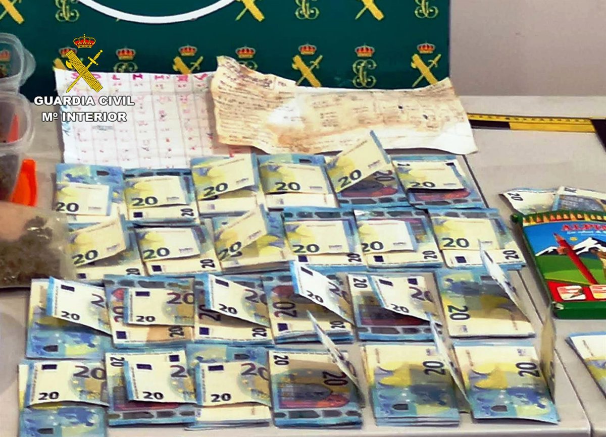 Imagen del dinero, la droga y los efectos incautados - GUARDIA CIVIL