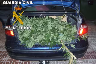 Tras ser sometidos a reconocimiento personal y examen del vehículo se constato que el maletero iba cargado con plantas de marihuana en un peso total de cuatro kilogramos, procediendo en ese momento a la detención de los ocupantes como presuntos autores de un delito contra la salud pública.