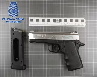Tras establecer un discreto control en las inmediaciones del domicilio del sospechoso, los agentes le localizaron cuando salía del mismo. Se produjo su inmediata detención y la intervención del arma utilizada, en principio, para la comisión del robo en el locutorio, una pistola que se pudo determinar que era de aire comprimido.
