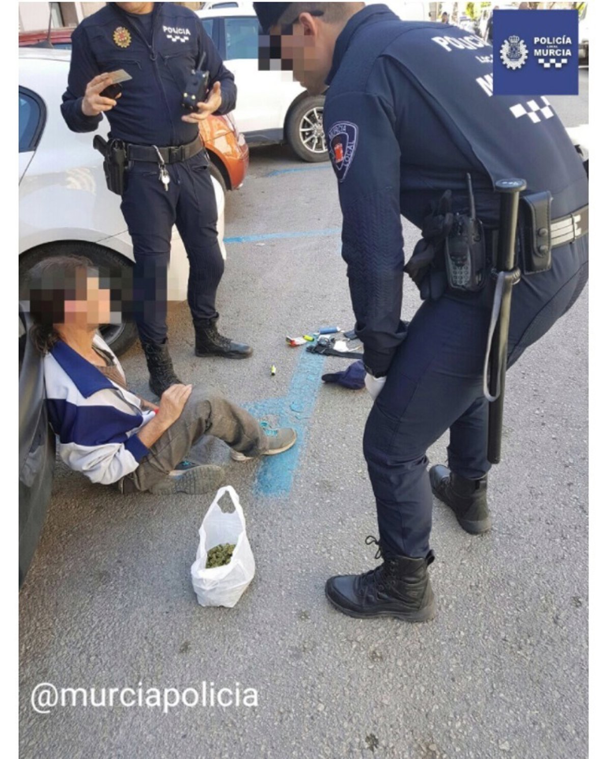 Una dotación del Grupo Especial de Seguridad Ciudadana (GESC) de la Policía Local de Murcia detuvo este jueves a un individuo con 101,620 gramos de marihuana en las inmediaciones del mercado de la Fama.