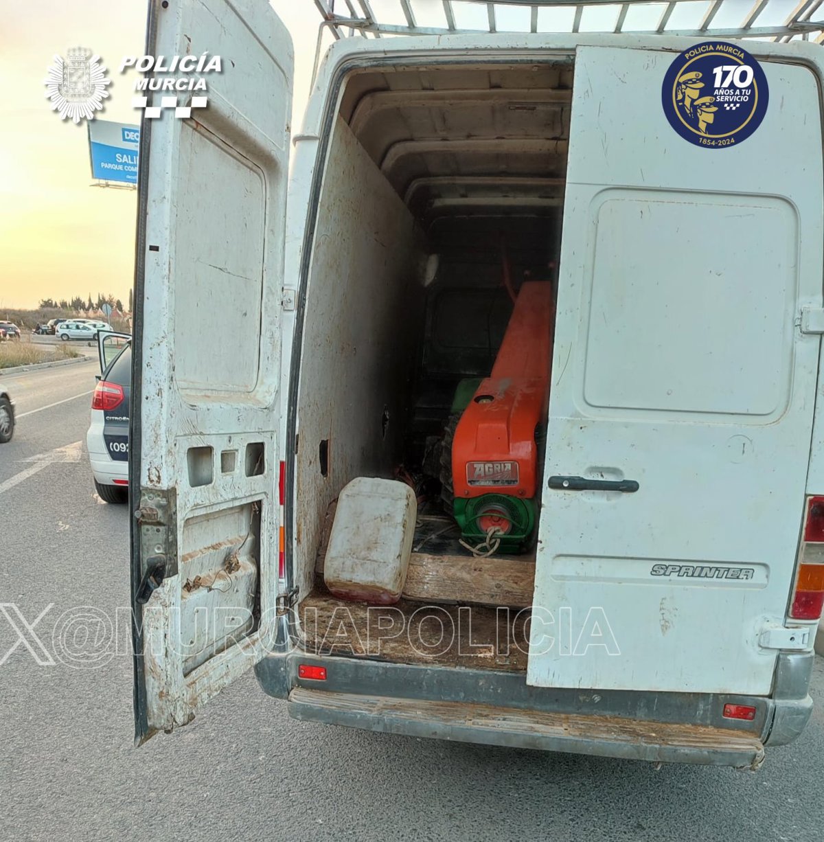 En la furgoneta, la Policía Local encontró un motocultor y un motor presuntamente robados.