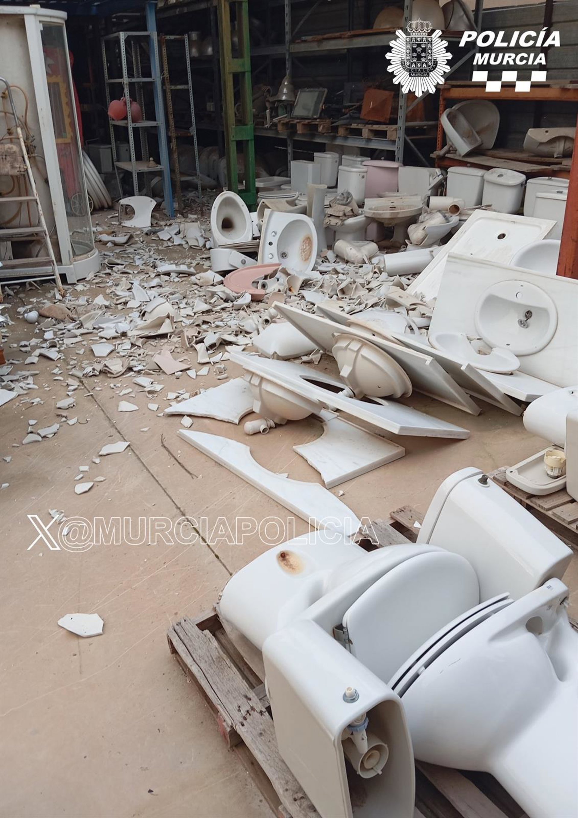 Imagen de los destrozos provocados en el almacén - POLICÍA LOCAL DE MURCIA