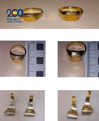 Los anillos fueron intervenidos y, una vez en dependencias policiales, los agentes pudieron comprobar cómo estos presentaban una pequeña parte de oro en la parte superficial y el interior estaba relleno de algún tipo de metal que aumentaba su peso considerablemente.