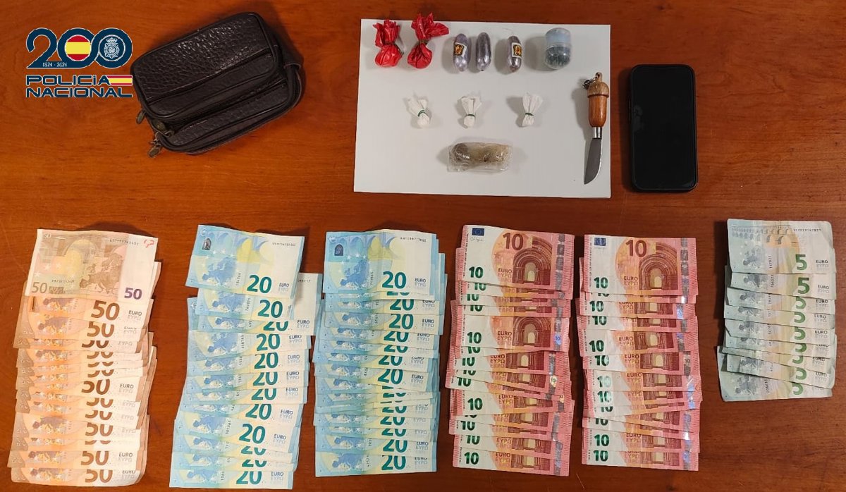 Entre las pertenecías del varón que ocupaba el asiento del copiloto del vehículo, los agentes encontraron un bolsito de color marrón con tipos de sustancias estupefacientes predispuestas para su venta, como más de 13 gramos de cocaína y 10 gramos de hachís, además de 1.665 euros en efectivo en billetes fraccionados cuya procedencia no pudieron explicar, esgrimiendo argumentos contradictorios e inverosímiles acerca del origen del dinero.
