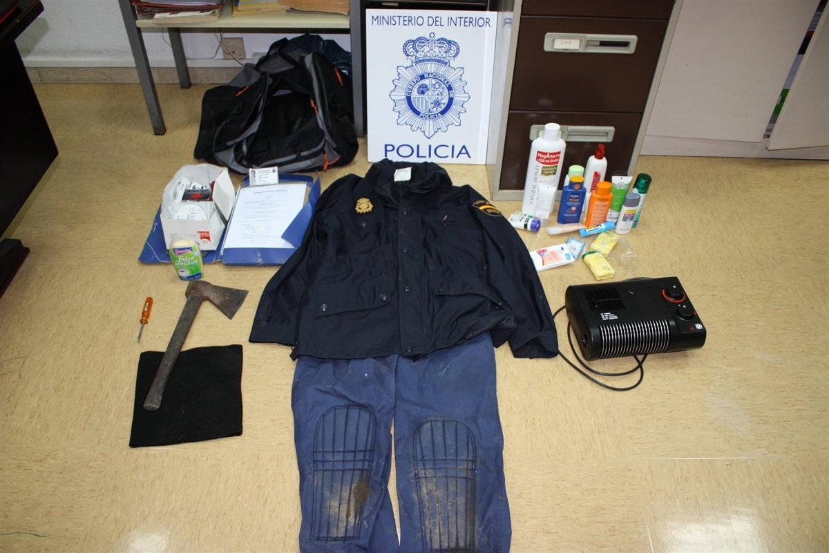 Además, los agentes iniciaron las gestiones pertinentes, tras contactar con el propietario de la finca, para proceder a la inspección ocular en el interior de la casa abandonada. Allí, encontraron un anorak azul del Cuerpo Nacional de Policía, un pantalón de color azul con el cinturón, además de una prenda polar de cuello de color negro de las utilizadas por las unidades de intervención policial.