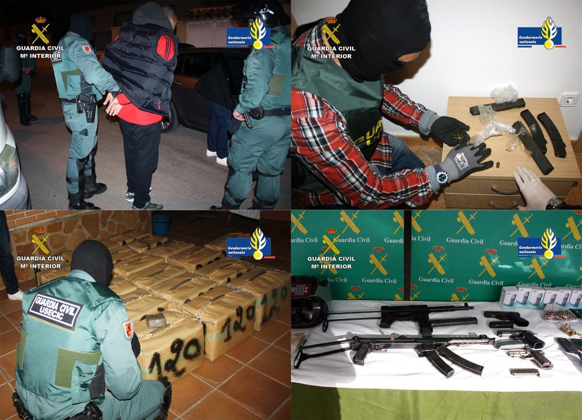 Paralelamente, los operativos realizaron siete entradas y registros en viviendas y naves industriales de los objetivos que se encontraban vigilados en Murcia, deteniendo a siete integrantes de la red e interviniéndose una furgoneta cargada con 700 kilogramos de hachís, otros vehículos, armas y munición, placas de matrícula falsificadas, teléfonos móviles y dinero en efectivo. Al mismo tiempo, en Francia se practicaron otros cuatro registros domiciliarios deteniendo a cuatro integrantes de la organización interviniendo armas, vehículos y dinero en efectivo.