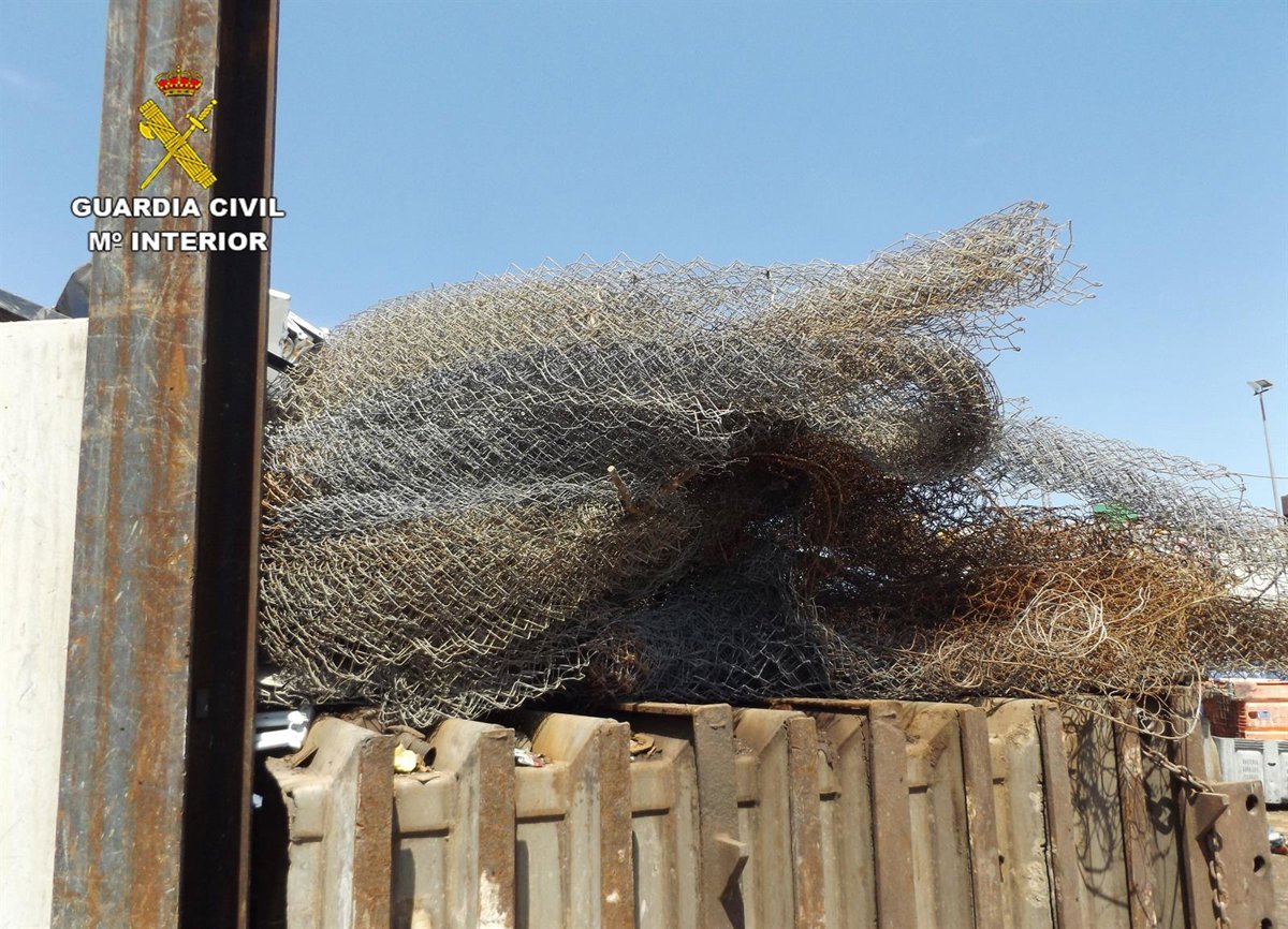 Las pesquisas practicadas en torno a plantas de reciclaje de materiales metálicos y plásticos permitieron a los guardias civiles de los equipos ROCA localizar abundante cantidad del vallado metálico sustraído, que fue recuperado.