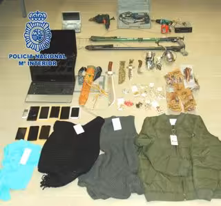 La Policía Nacional llevó a cabo a cabo tres registros domiciliarios, dos de ellos en Lorca y uno en Águilas, quedando intervenidas pequeñas cantidades de heroína y marihuana, unos 2.000 euros aproximadamente, tres teléfonos móviles de procedencia ilícita, ropa, herramientas y otros útiles objeto de receptación.