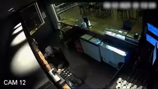Momento en el que uno de los asaltantes propina una patada a un empleado del local - GUARDIA CIVIL