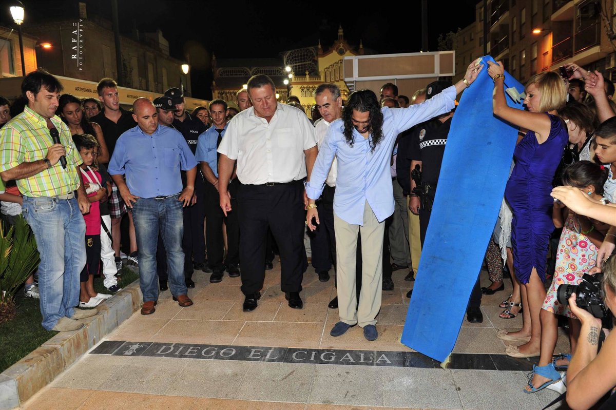 Tras la actuación, Diego El Cigala, acompañado del alcalde de La Unión y presidente de la Comisión Ejecutiva de la Fundación Cante de las Minas, destapó su Lámpara Minera en la Avenida del Flamenco, situada frente al Antiguo Mercado Público.