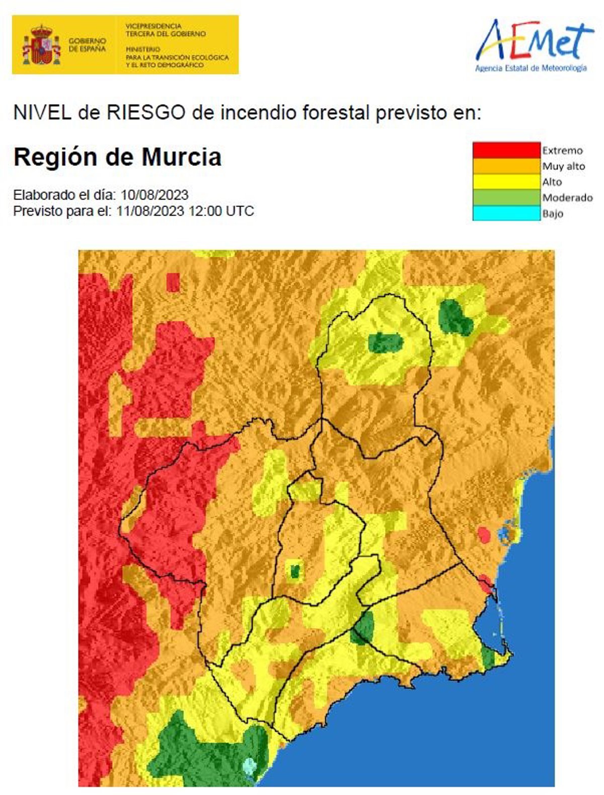 El riesgo extremo de incendios forestales ya no domina la Región de Murcia este viernes, según la Agencia Estatal de Meteorología (Aemet), que advierte, no obstante, que el riesgo medio sigue siendo alto o muy alto en la mayor parte de la Región.