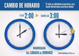 La madrugada de este domingo, 27 de marzo, comenzará el 'horario de verano' ya que a las 02.00 horas se adelantarán una hora los relojes hasta las 03.00 horas.