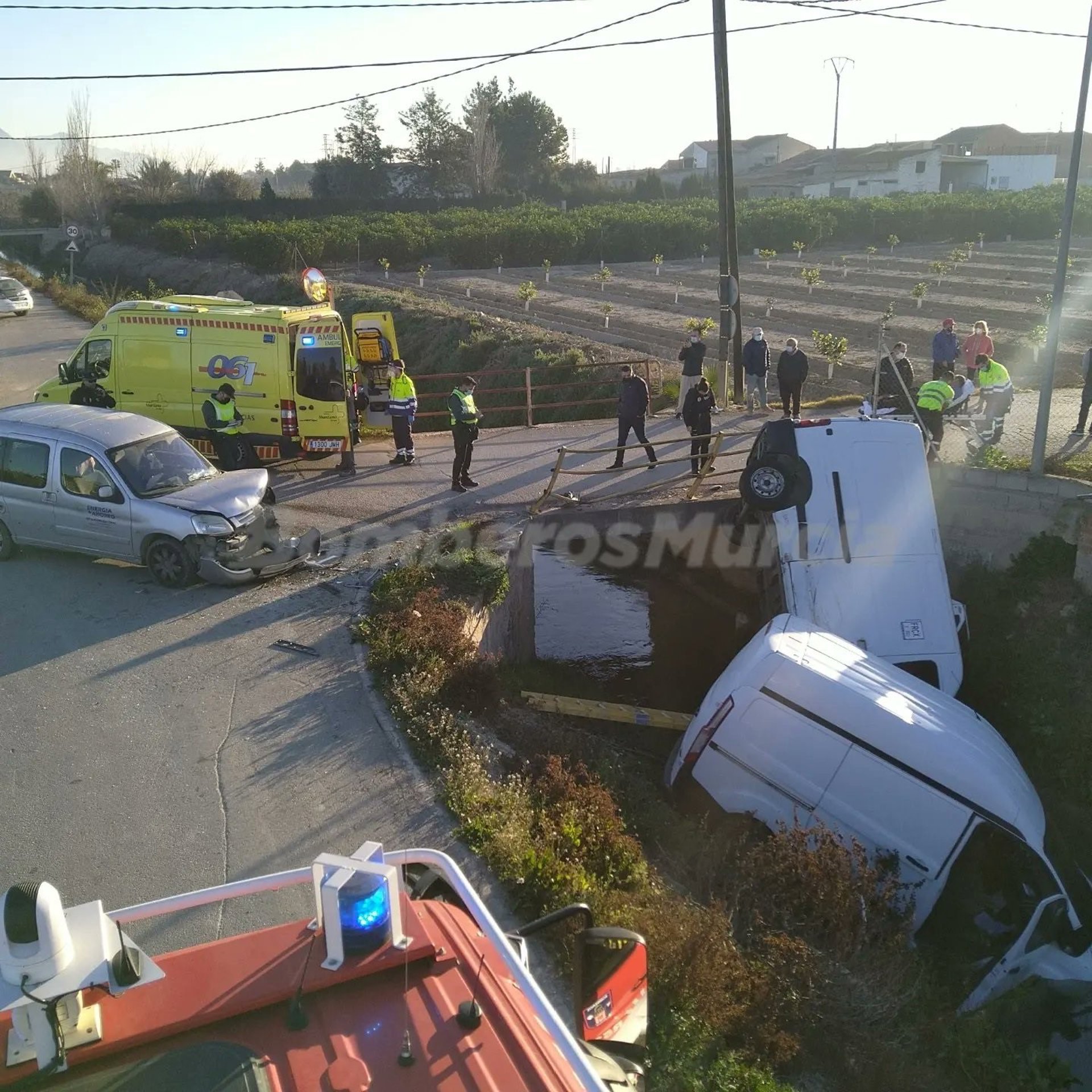 El '1-1-2' ha recibido una llamada a las 8.11 horas alertando de que se había producido un accidente de tráfico en la Orilla del Azarbe, en el término municipal de Santomera.