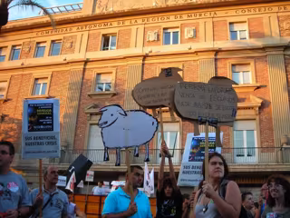 Ecologistas en Acción secundó la jornada de huelga general, además de que realizó una acción simbólica a las puertas de la Consejería de Agricultura y Agua para protestar por la "nefasta política ambiental" que lleva a cabo el Ejecutivo murciano.
