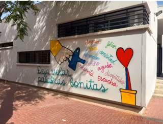 Una de las frases ganadoras en una pared dell CEIP Las Tejeras de Alcantarilla (Murcia) - CARM