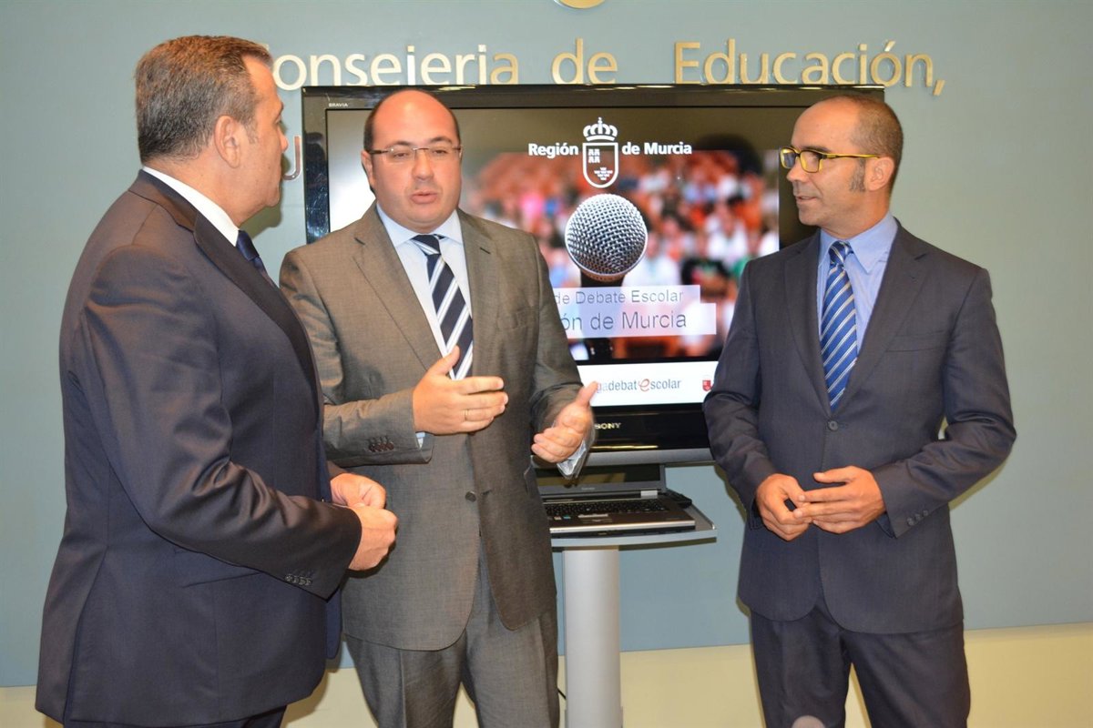 El consejero de Educación, Universidades y Empleo, Pedro Antonio Sánchez, ha presentado este miércoles un novedoso programa educativo a desarrollar durante este curso, denominado 'Liga de Debate Escolar BBVA', en el que alumnos y profesores de 4ª de la ESO de 20 centros de la Región recibirán formación en retórica, análisis crítico y habilidades deliberativas, con el fin de mejorar sus competencias de comunicación y argumentación.