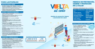 La Consejería de Educación y Cultura ha elaborado un díptico informativo, dirigido a las familias y los alumnos de la Región de Murcia, que pretende facilitar y hacer más accesible la información sobre las medidas de prevención, higiene y promoción de la salud frente al Covid-19, de cara al inicio de curso y la vuelta a las aulas.