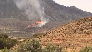 El Centro de Coordinación de Emergencias 1-1-2 Región de Murcia ha recibido a partir de las 13.08 horas numerosas llamadas informando del incendio forestal declarado en este paraje próximo a la Sierra del Buey, en el término municipal de Jumilla, y han alertado que el fuego subía por el monte.