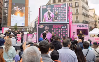 El stand estará dotado de una pantalla de grandes dimensiones en la estructura central para visualizar lo que está sucediendo en tiempo real. La acción se complementa con la difusión de material audiovisual en las dos pantallas que forman parte del edificio de Cines Callao.