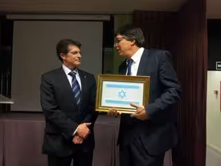 Alon Bar, como gesto de reconocimiento, recibió un obsequio por parte del alcalde, consistente en un banderín de Israel bordado en seda, un detalle que agradeció de forma efusiva aprovechando para recordar que en su visita al municipio quedó muy sorprendido por la calidad y elegancia del bordado lorquino, según indican fuentes consistoriales en comunicado.