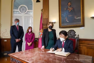 El embajador también ha aprovechado su visita a la ciudad portuaria para firmar en el Libro de Oro de la Ciudad, donde ha escrito la siguiente dedicatoria: "Corea y España, Socios Estratégicos. Muchos más logros bajo el gran liderazgo de Noelia Arroyo, alcaldesa de Cartagena".