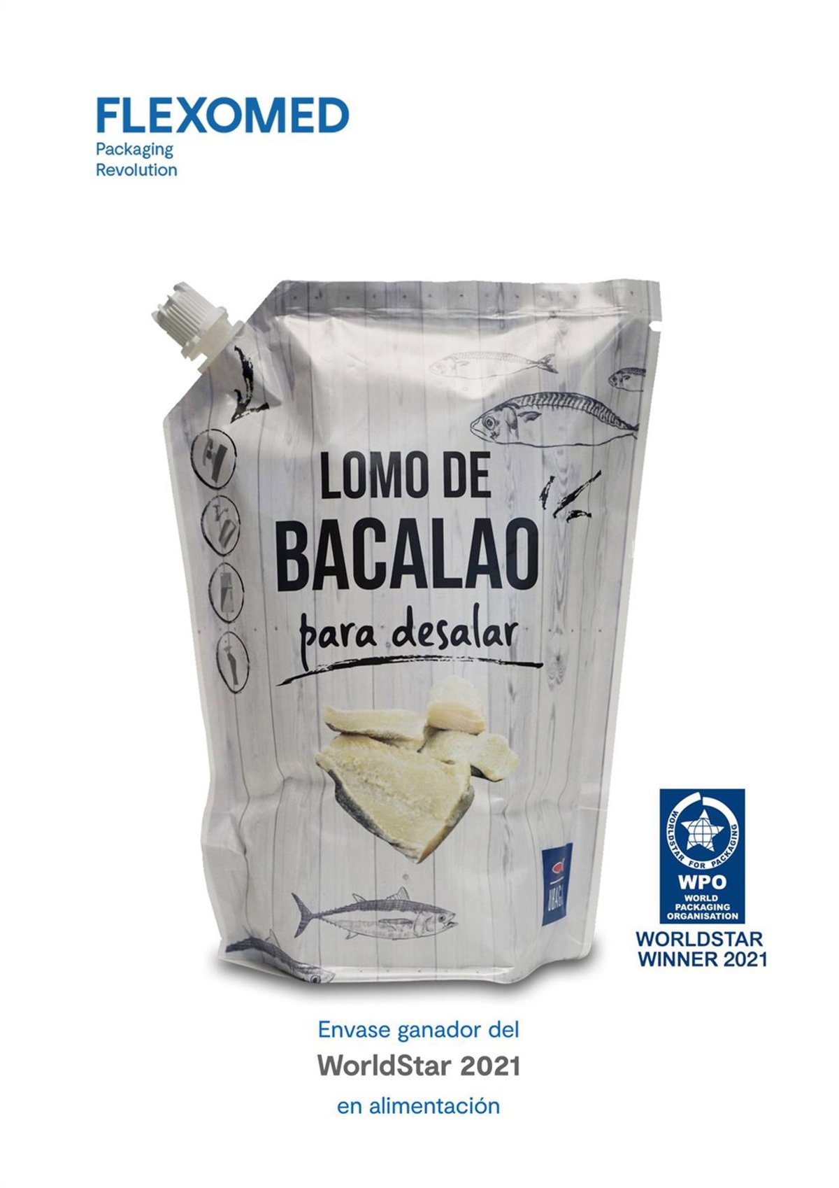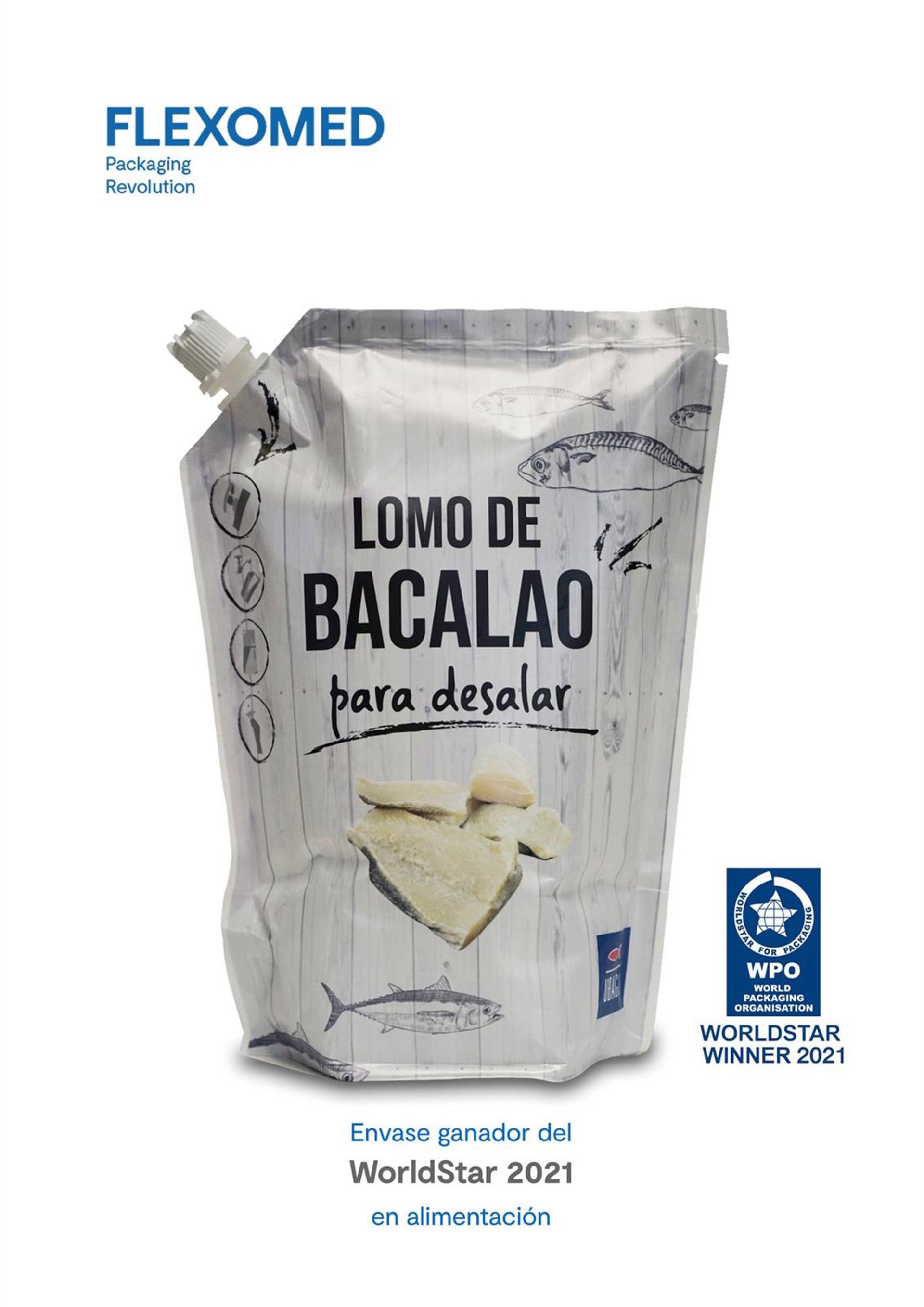 Flexomed (https://flexomed.com), pionera en la fabricación de este tipo de envases en España le dio una vuelta al concepto e ideó para su cliente 'Ahumados Ubago' la forma de desalar el bacalao sin sacar el producto del envase.