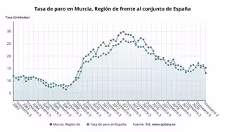 Evolución de la tasa de paro en la Región de Murcia - EP DATA