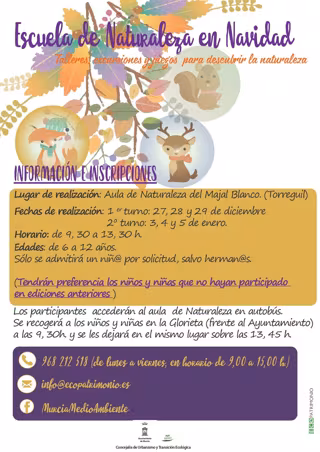 Cartel de actividades de la Escuela de Naturaleza en Navidad - AYUNTAMIENTO DE MURCIA