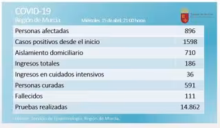 Balance de coronavirus en la Región de Murcia el 15 de abril de 2020 - CARM