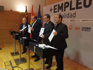 Este acuerdo, que viene gestionándose desde septiembre de 2015, ha sido rubricado hoy por el presidente regional, Pedro Antonio Sánchez, el secretario general de UGT en la Región, Antonio Jiménez, el presidente de la Gestoral de CCOO RM, Carlos Bravo, y el presidente de CROEM, José María Albarracín. Al acto también ha acudido el secretario de Estado de Empleo, Juan Pablo Riego.