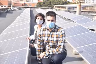 Imagen del autor del TFG y su directora en una instalación fotovoltaica de la UPCT, así como declaraciones de ambos en audio - UPCT