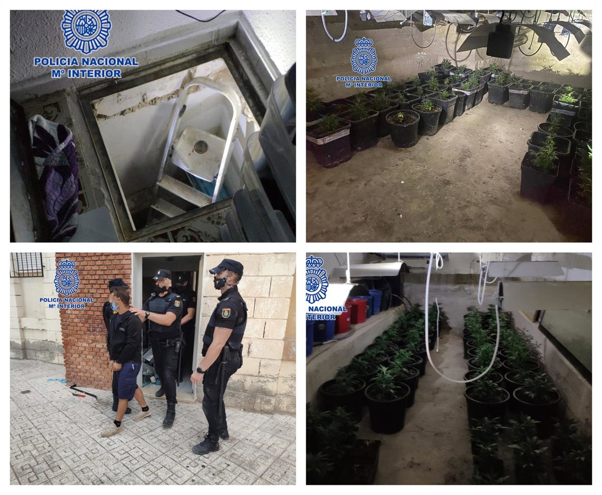 Agentes de la Policía Nacional han procedido a la detención, en Murcia capital, de un joven de 30 años que había dispuesto un cultivo interior de marihuana con 119 plantas en el interior de la cámara de aire de su edificio, en el centro de la ciudad de Murcia.