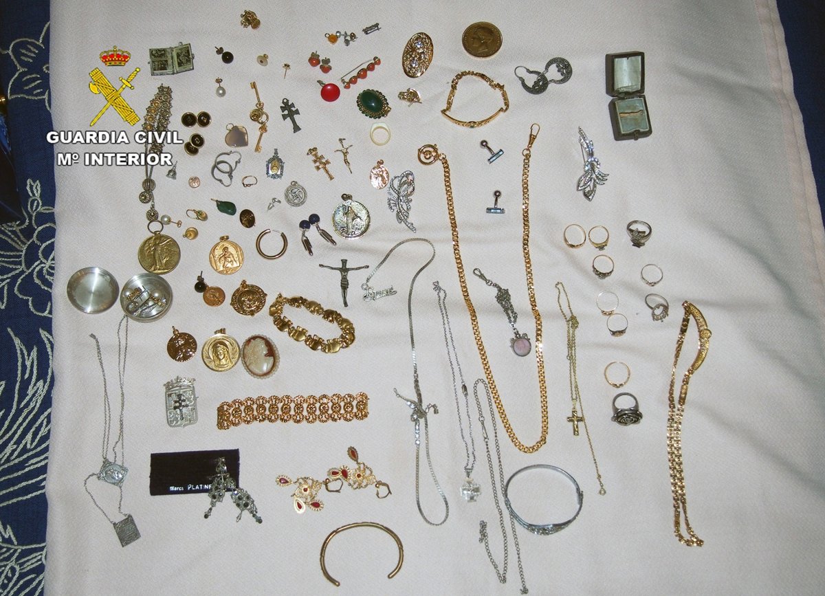 Se trata de un centenar de joyas, alhajas y otros objetos de dudosa procedencia intervenidos en un domicilio de Bullas y cuya propiedad podría corresponder a vecinos tanto de Bullas como de localidades limítrofes, víctimas de hurto o procedentes de donaciones a la Patrona de la localidad, Nuestra Señora del Rosario, las cuales podrían haber sido apropiadas ilícitamente.