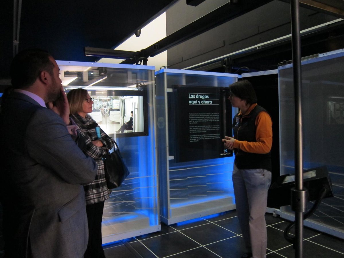 Entre las secciones de la exposición destaca un simulador de conducción en función del consumo de diferentes drogas, los resultados de un experimento realizado con arañas a las que se les suministró una dosis de LSD o los efectos que tiene el consumo de drogas en el cerebro humano.