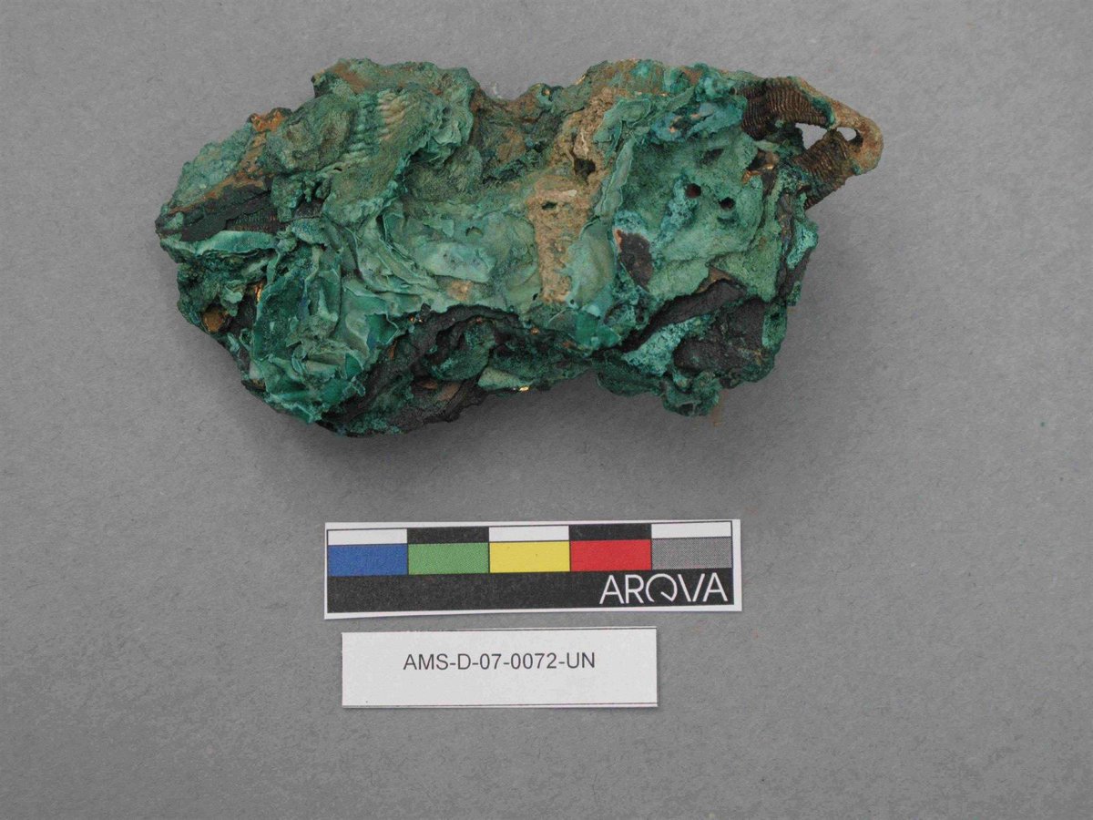 Al encontrarse amalgamada, permite elaborar la hipótesis de que el tripulante se había quitado esta botonadura al estar en desuso, tras el reglamento de 1802, que ordenaba sustituirlas por la que presenta una corona real sobre ancla, y las portaba en una bolsa de tela, al encontrarse fragmentos de ésta adheridos al cúmulo de botones.
