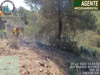 Al lugar se han movilizado agente medioambiental, que ha solicitado medios de extinción, miembros del Servicio de Emergencias y Protección Civil del Ayuntamiento de Lorca y un helicóptero con brigada forestal helitransportada.